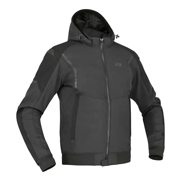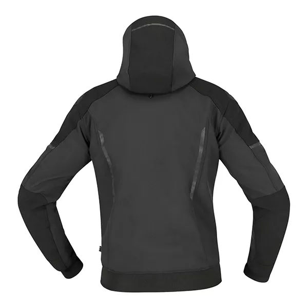 A mid-season motorcycle hoodie combining casual style with serious protective performance. Crafted from high abrasion-resistant softshell and ripstop textile with safety stitching in high-risk zones, it features CE-rated D3O® L1 armour at shoulders and elbows (upgradeable) and a pocket for a central D3O back protector. A welded 10,000 mm Aquashell LTZ waterproof membrane with soft mesh lining keeps you dry and comfortable, while practical touches like detachable hood with snap/zipped fixings, stretch cuffs with thumb openings, dual internal/external pockets, storm-flap front zip, and a short connection zipper make it versatile on and off the bike.