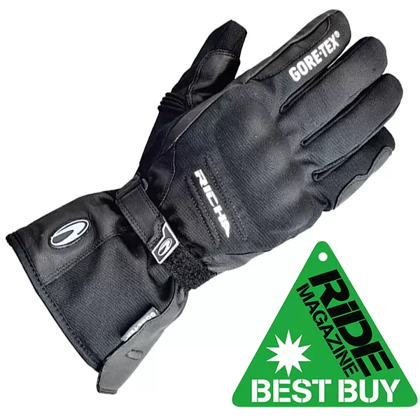 Cold-weather motorcycle glove featuring a Gore-Tex® waterproof and breathable membrane, tri-fleece thermal insulation, reinforced leather construction, and integrated knuckle protection for reliable warmth, weather resistance, and impact protection in winter riding conditions.